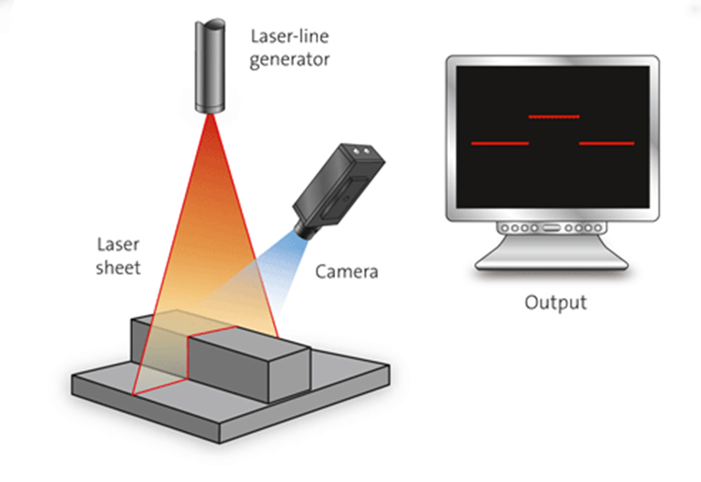 - Laser Triangulation is used to recover the 3D point cloud of any random shape of an object on a moving conveyor. It can be used for defect detection, high-accuracy profile measurement, object classification or any other application which cannot be solved only with the X and Y dimensions. Single or multiple laser sources along with single or multiple cameras are used to scan the cross-section of the moving object and the laser profile is analyzed to generate the 3D point cloud of the object. This is further aligned and compared with a master template to highlight the differences between the two.